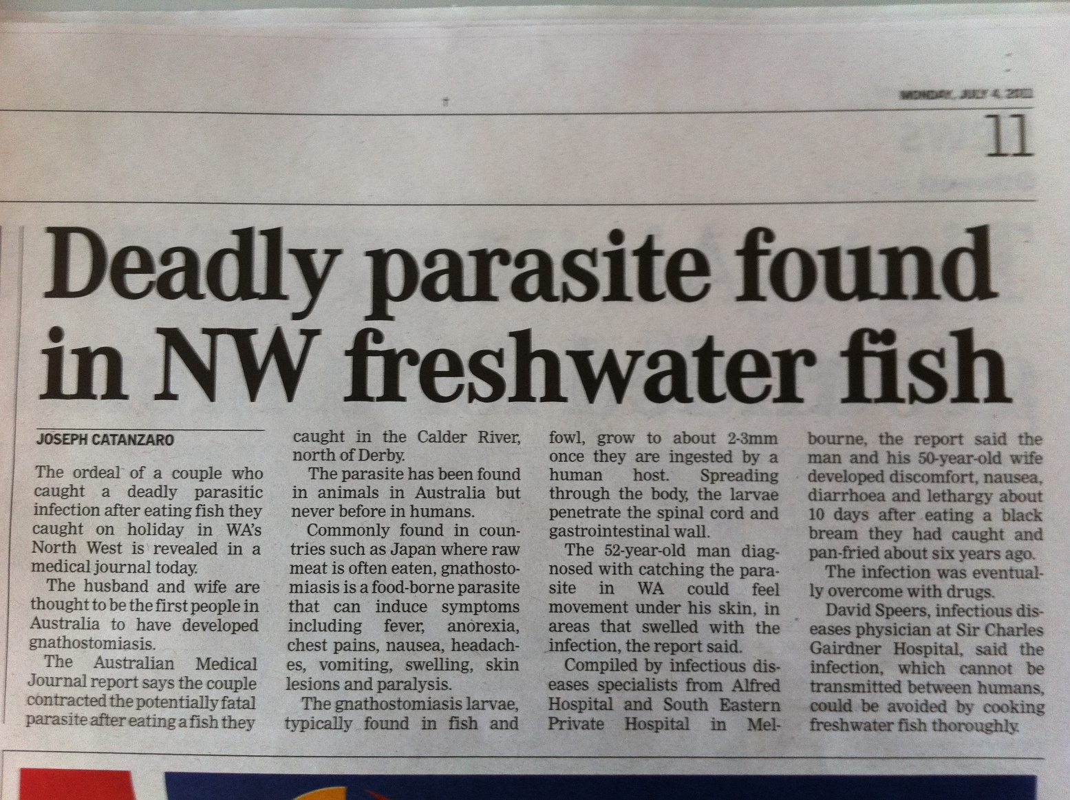 Such parasitic infections can occur in humans who ingest certain poorly cooked freshwater fish. Prevention is easy by pre-freezing the fish and/or cooking fish properly. Treatment for infected humans would be by means of traditional anthelmintics combined with anti-inflammatories.
