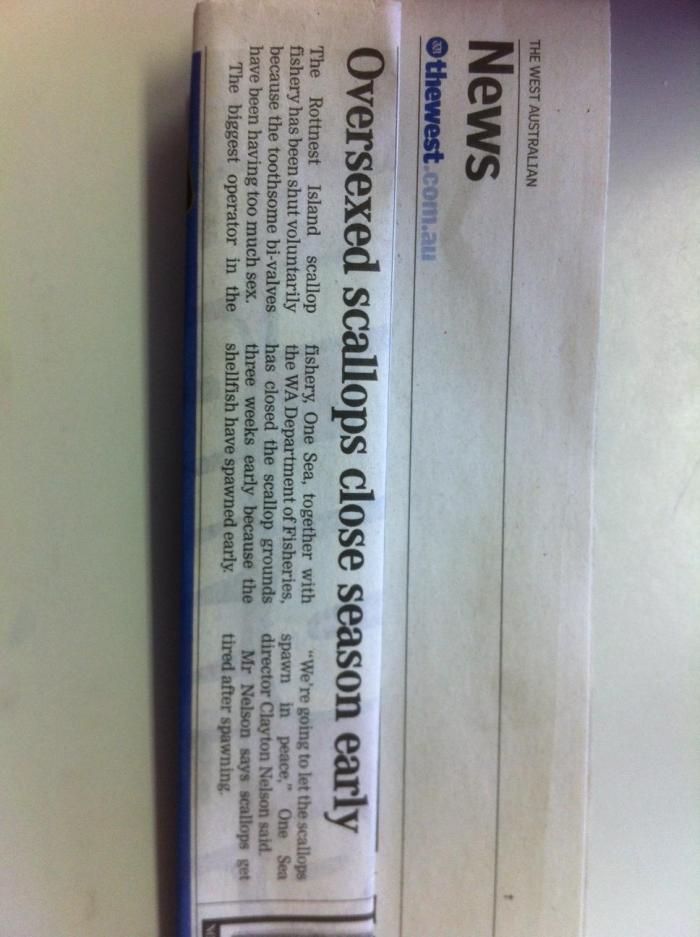 Oversexed scallops … Posted on 2011/10/14 by TheFishVet - Richmond's School of Fish From today’s West Australian: Share this: Click to share on Facebook (Opens in new window) Facebook Click to share on X (Opens in new window) X Click to share on LinkedIn (Opens in new window) LinkedIn Click to email a link to a friend (Opens in new window) Email Click to print (Opens in new window) Print Like Loading... Published by TheFishVet - Richmond's School of Fish Aquatic veterinary medicine, pathology and educational services for fish. A repository for useful information and events. View all posts by TheFishVet - Richmond's School of Fish
