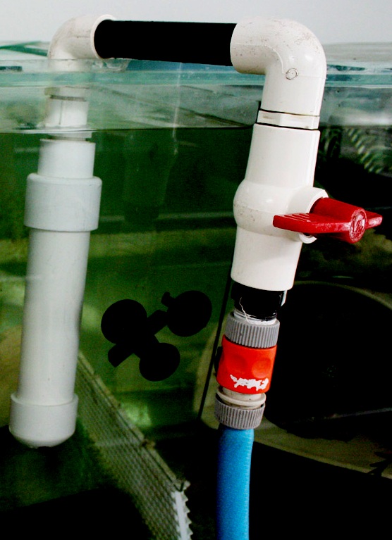 - a wide diameter pipe at the outlet to insert activated charcoal (this will adsorb the chlorine and most other chemicals that may be dissolved in the water).