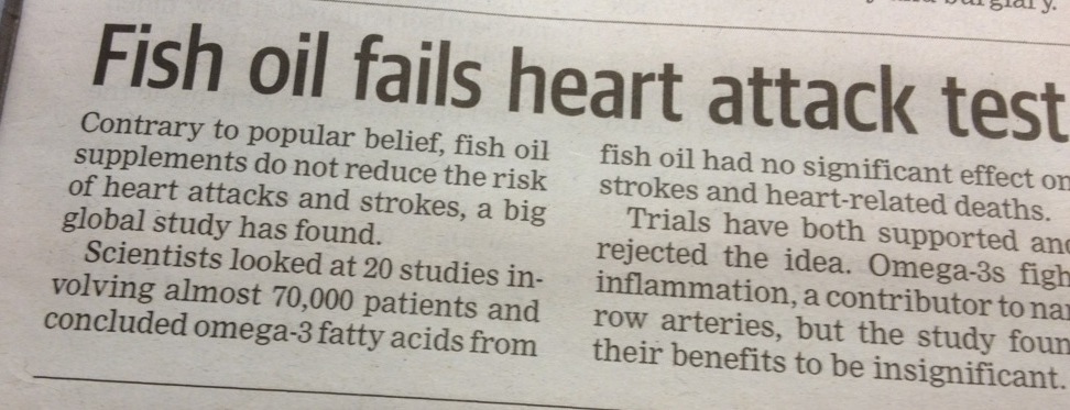 Is eating fish really not beneficial for the heart? Posted on 2012/09/13 by TheFishVet - Richmond's School of Fish From page 5 of today’s West Australian. Really? Share this: Share on Facebook (Opens in new window) Facebook Share on X (Opens in new window) X Share on LinkedIn (Opens in new window) LinkedIn Email a link to a friend (Opens in new window) Email Print (Opens in new window) Print Like Loading... Published by TheFishVet - Richmond's School of Fish Aquatic veterinary medicine, pathology and educational services for fish. A repository for useful information and events. View all posts by TheFishVet - Richmond's School of Fish