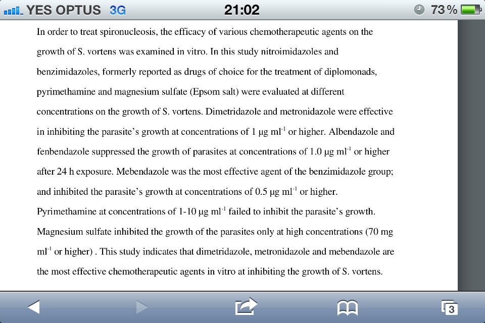 can precipitate out of solution within 6-8 hours, and it can become rather expensive when treating large systems. While doing some online research on spironucleus I came across an interesting study that mentioned the use of