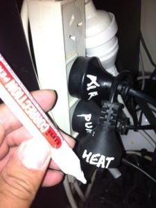 Is there a mess of power boards and innumerable plugs for the number of electric gadgets? How can you tell which belongs to which? This is especially important when conducting water changes where you for want the heater to crack if the water level gets too low, or when treating fishes in the tank when you need to turn off the UV to prevent rapid breakdown of the drug? Of course, for this might not be a problem for fish owners because we can usually work out what’s what by trial and error, plugging and unplugging each one in turn. But what if you’re not going to be home for some time and require your partner or house mate to unplug something for you?