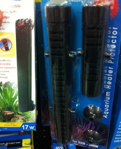 There are two solutions. One is to purchaser a plastic-encased heater that’s ‘indestructible’. The other option is to purchase a fenestrated sleeve that goes over the glass encased submersible aquarium heater.