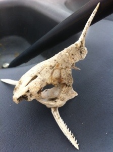 Pictured below are the bony structures of the Synodontis catfish. Checkout the long bony first ray of the dorsal fin. It’s like a lance and can penetrate any soft tissue readily.
