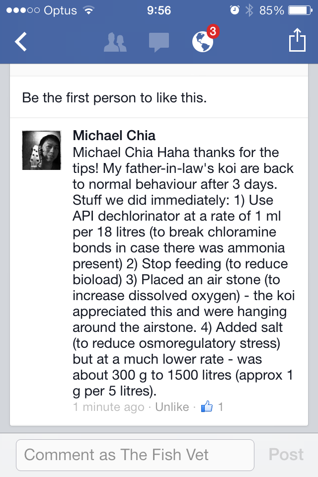 Check out what steps my colleague took, to treat fish affected by chlorine toxicity, in the post pictured below.