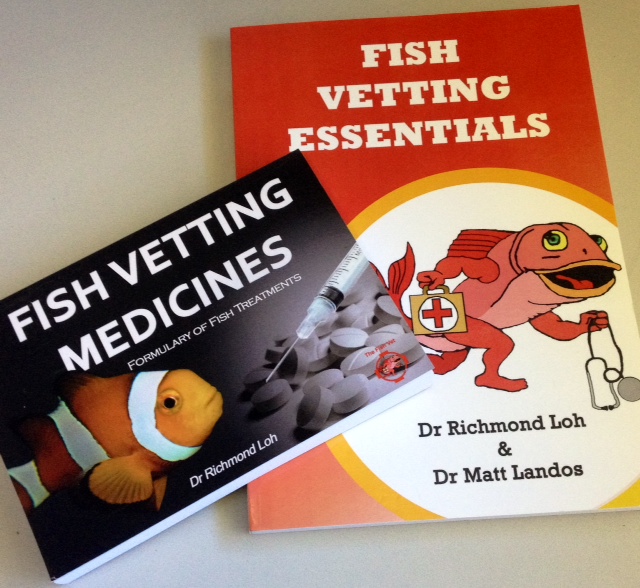 Fortunately, I have made available, “Fish Vetting Medicines: Formulary of Fish Treatments” and “Fish Vetting Essentials“. The former will be your “little black book” that you’ll be referring to every time you need a dose rate for medicines used in fishes. The red book is to help you diagnose fish ailments.