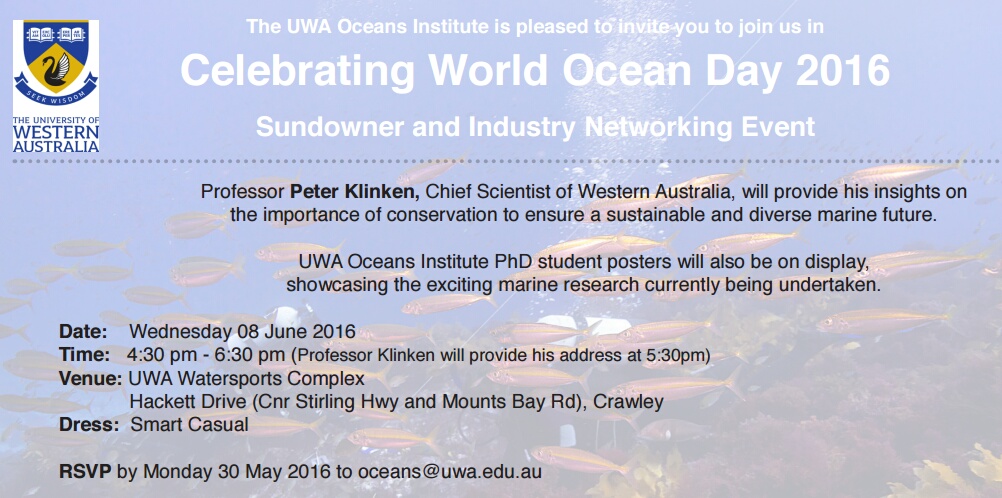 RSVP by Monday 30 May 2016 to oceans@uwa.edu.au