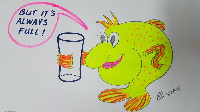 Fish Joke for Monday-itis: fish are eternal optimists Posted on 2018/02/262018/02/17 by TheFishVet - Richmond's School of Fish Have a FINtastic week! R <+>{ Share this: Click to share on Facebook (Opens in new window) Facebook Click to share on X (Opens in new window) X Click to share on LinkedIn (Opens in new window) LinkedIn Click to email a link to a friend (Opens in new window) Email Click to print (Opens in new window) Print Like Loading... Published by TheFishVet - Richmond's School of Fish Aquatic veterinary medicine, pathology and educational services for fish. A repository for useful information and events. View all posts by TheFishVet - Richmond's School of Fish