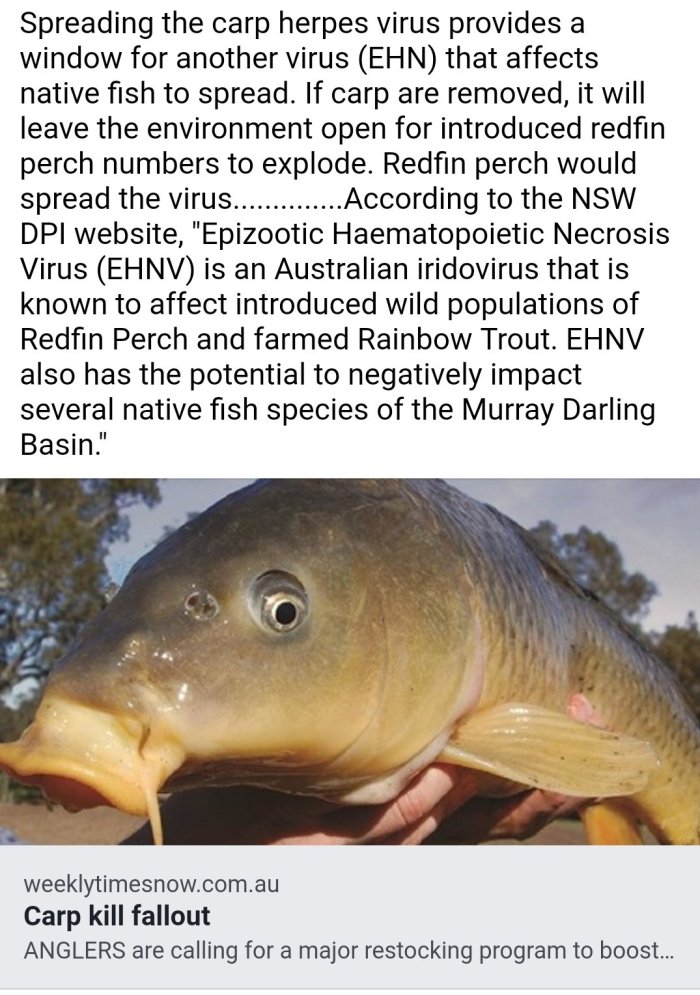 A decision to release the virus in Australia is due at the end of the year, once the National Carp Control Plan is delivered to the Federal Government...