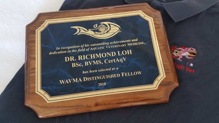 This might come as a little surprise because we don’t do this every year. When the board sits down and looks at this, they look for these people and they give them recognition as a Fellow of the WAVMA. This is rather a distinguished recognition, and I would like to as Dr Richmond Loh, to come up and accept the plaque…