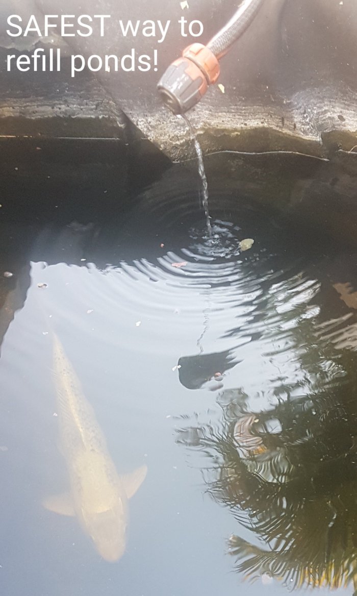 Chlorine and chloramine has been added to our tap water supplies as a disinfectant, making it safe for us to drink straight from the tap. But these chemicals are toxic to fish. Normally, we use anti-chlorine that is in proprietary water conditioners from your local fish shops. But when you forget, and leave your hose on full for too long, toxic levels of chlorine can build up in your pond.