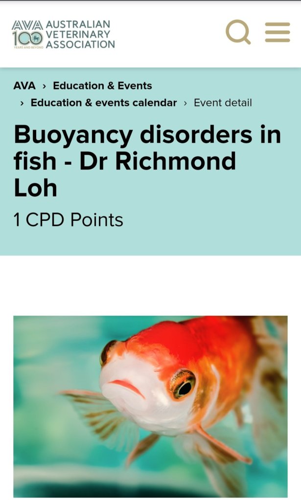 For more information on the webinar, go to Australian Veterinary Association Fish Vet Webinar