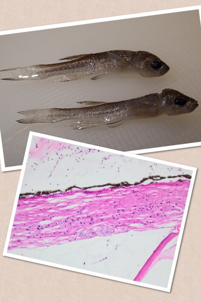 I was just discarding old formalin-fixed fish specimens from my store and came across two leopard danios with scoliosis and in very thin condition. These fish were sampled back in April 2013, from one of my client’s tanks, but no further testing was done.